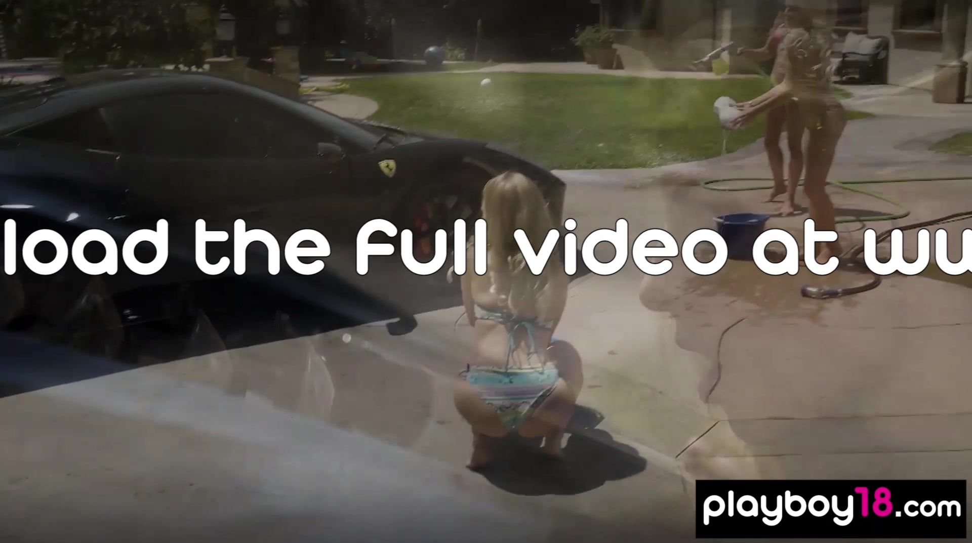 Hot asian babe Ocean with big boobs and her skinny busty BFFs Kat Harter Avery and Krissy Hartley drop off their tiny bikinis and the naked bubble covered beauties are washing a sports car to get some money